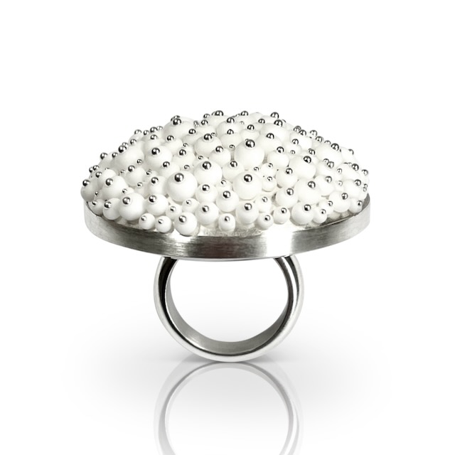 Claire has been a practising jeweller for over 30 years. Her passion for jewellery and love of colour were sparked during childhood visits to Africa. While studying at the Loughborough College of Art & Design and later at The Royal College of Art, Claire worked with enamelled surfaces and glass beads, combining bold colour and experimental techniques. After graduating in 1991 she won the Worshipful Company of Goldsmiths Award for Silversmithing and set up her first studio at Cockpit.