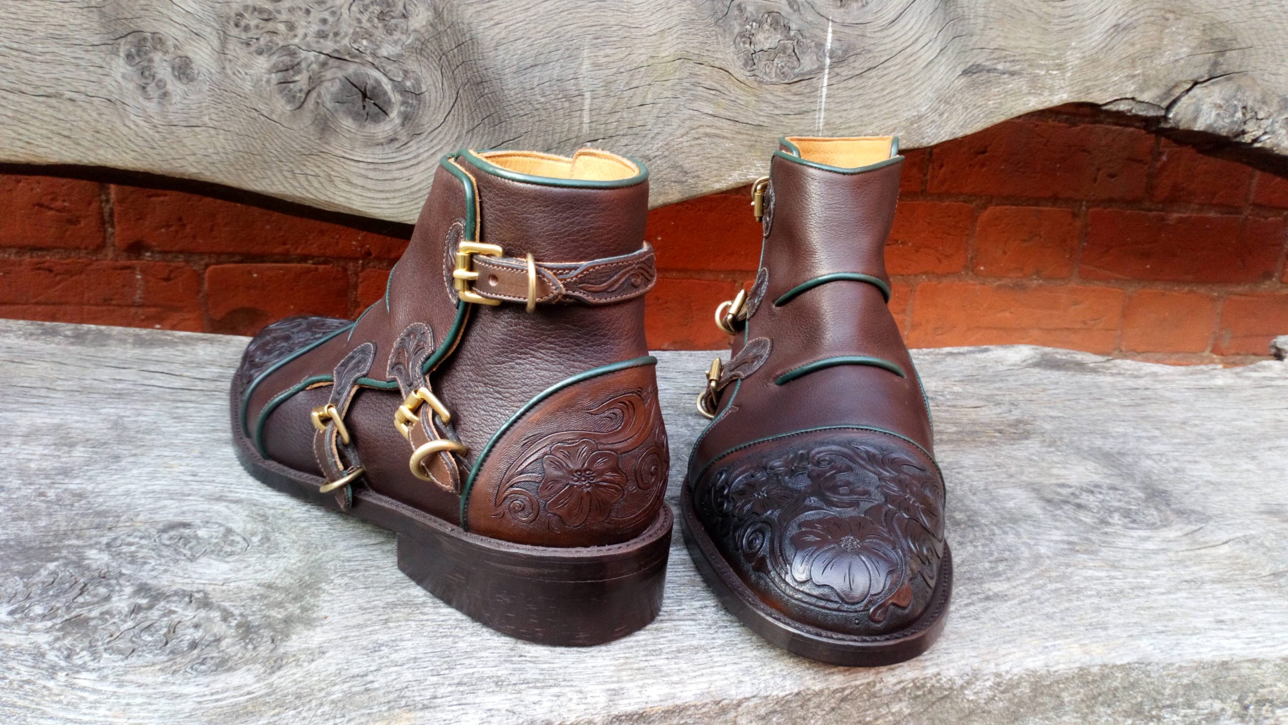 Grace has been working with leather since 2016, and have designed and made costume props and set pieces for the Royal Ballet and Opera, worked as a made to order footwear artisan for a small luxury designer, and made costume pieces for immersive theatre travelling the country on a train. They trained for three years at Capel Manor College.