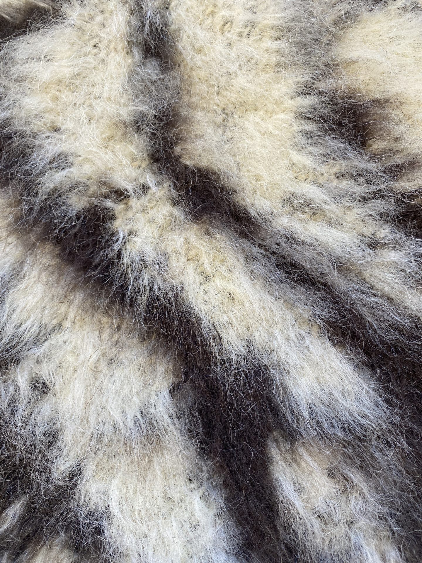 Her work employs a hands-on approach, using traditional handcraft techniques such as hand embroidery and felting, as well as brushing, hand tufting and hand dyeing.