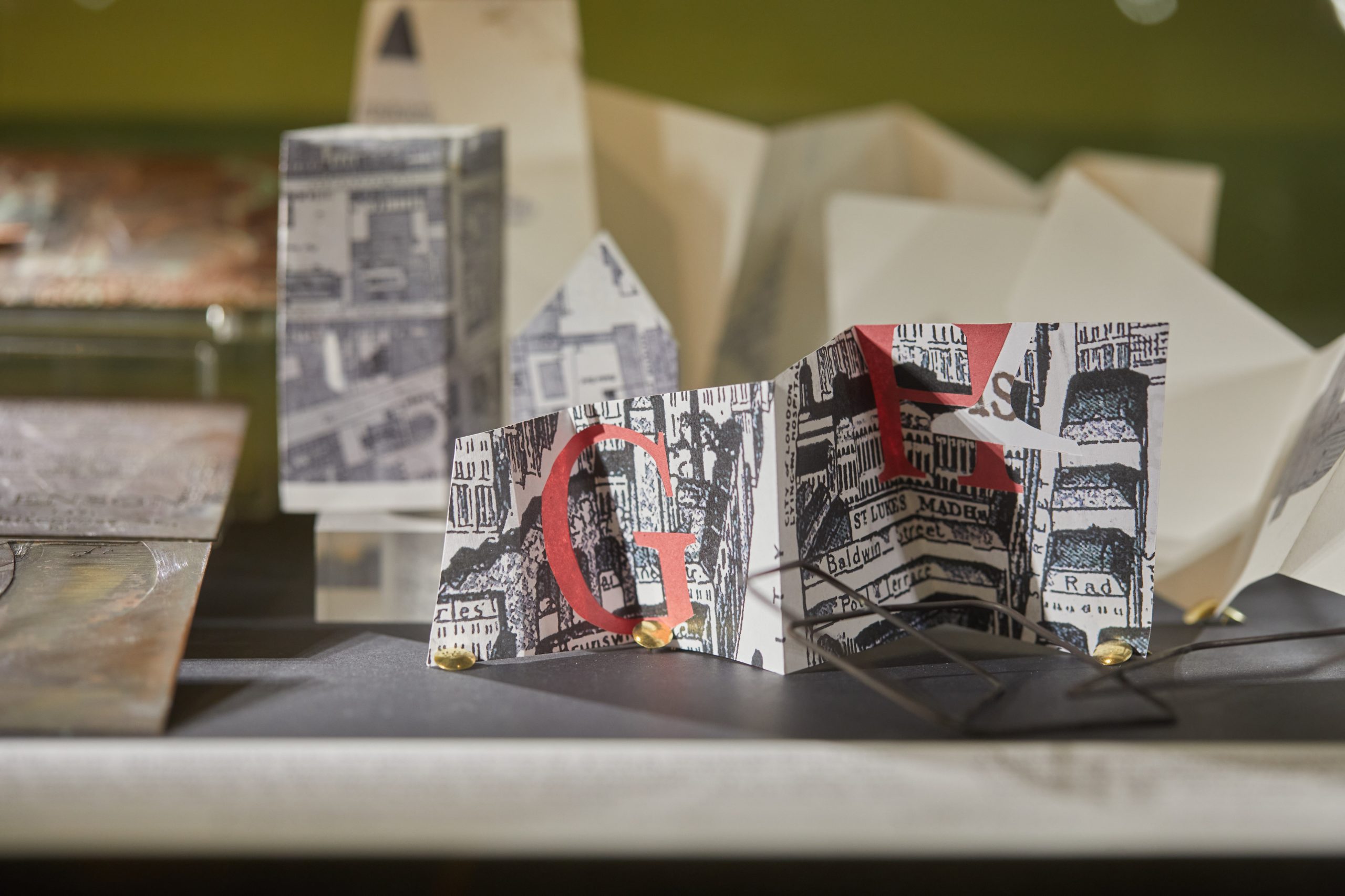 Her process is entirely intuitive, allowing her to fluidly adapt concepts as her understanding of the subject grows, with her artwork evolving up to the final fabrication. Shadows, enamelling and etching overlap in Jacky’s artworks, with half-revealed images and forms inviting second glances, provoking questions and sparking conversation about the materials that inspired her. This residency broadened her archival and community-led practice, and challenged Jacky to work in new ways as she was unable to use metalwork processes in the St Luke’s studio. So gave her more time to explore ideas through drawing, collage and bookmaking.
