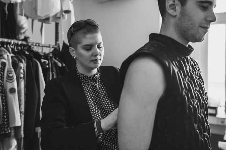 Julio Peña wearing Ana's garment. Photo: Xavi Farré.