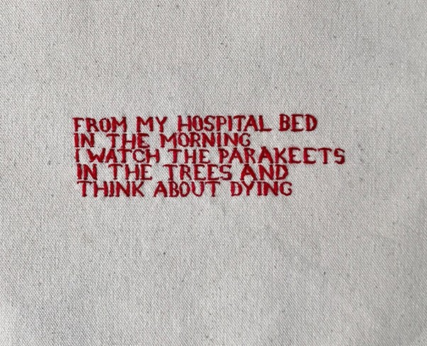 In September 2020, ceramicist Leah Jensen’s life was turned upside down by an aggressive brain tumour diagnosis. Unable to work with clay during long periods spent in a hospital bed, she turned to embroidery as a creative outlet and a way to process and document her experience.