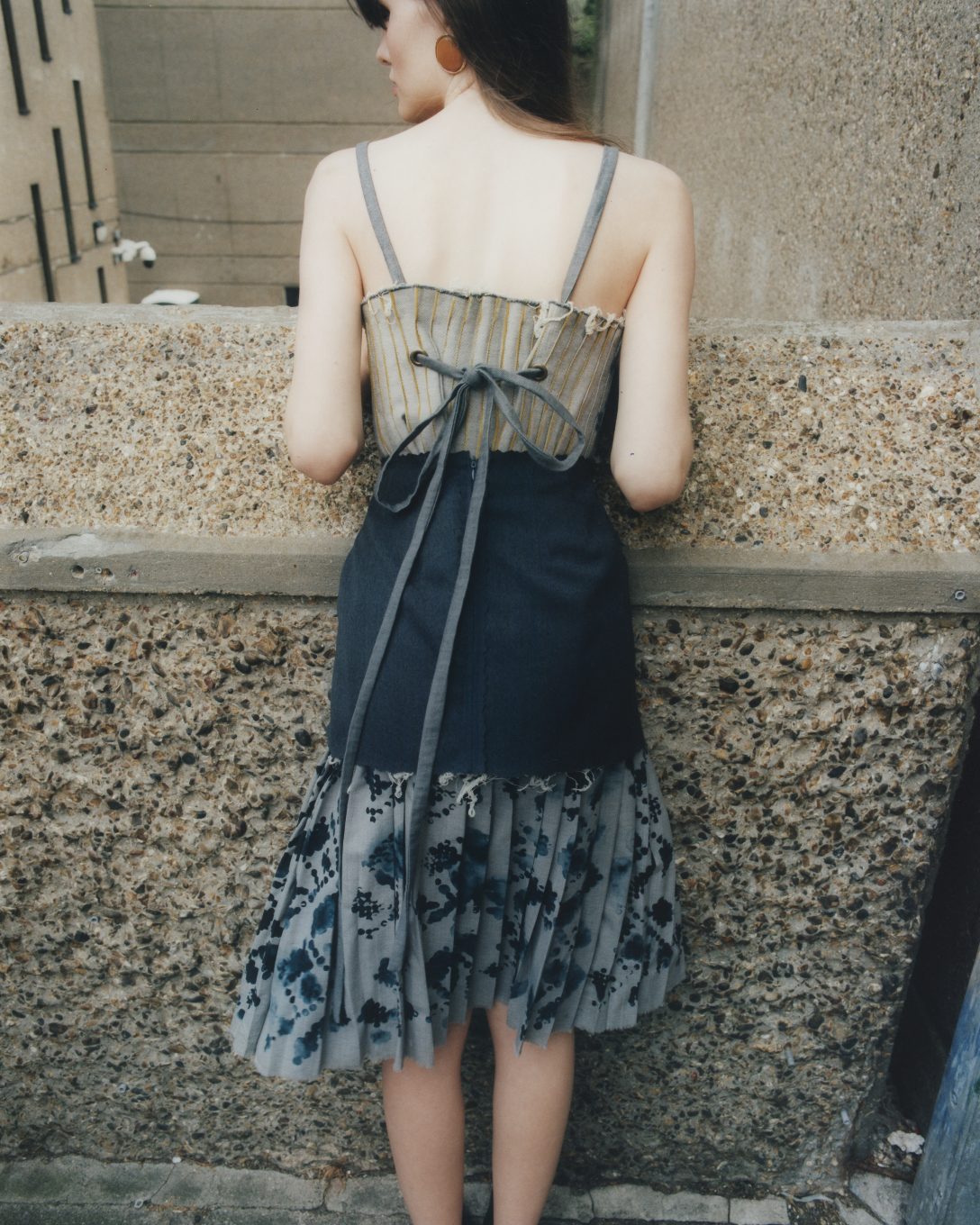 Sofi Chetrar is a womenswear designer creating one-of-a-kind pieces rooted in her Moldovan heritage. She blends traditional motifs, hand-dyed textiles, and contemporary techniques to reinterpret folk embroidery, home sewing culture, and menswear details for today. Working with dead stock materials and artefacts sourced from Moldovan flea markets, she documents and reimagines these cultural elements using both digital processes and handcraft inspired by her grandmother’s pattern drawings.